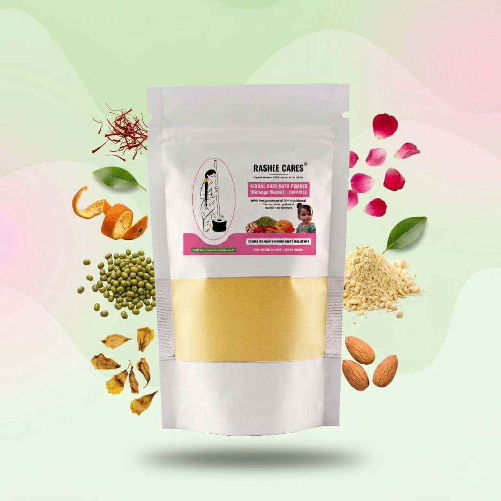 Rashee Cares Herbal Girl Baby Bath powder is made with traditional herbs, roots, grains & exotic flowers that keep your little one’s skin moisturized and glowing from day one. It allows the skin to build immunity naturally. This is an excellent alternative to your soaps, body wash & face wash. It is non-toxic, 100% plant-based and free from toxic chemicals and contaminants. All herbs are 100% naturally harvested, dried, and pulverized without the chemical interactions that assure the natural herb powders.